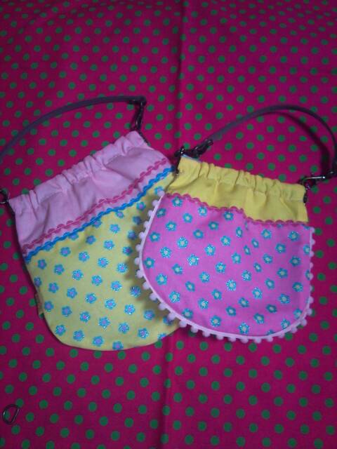 左側の布地はピンク×ミドリ パープル×黄色です。