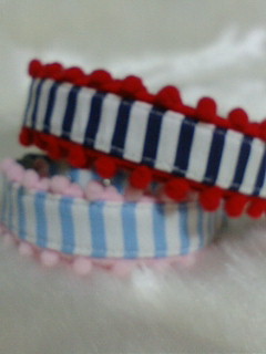 紺色×白のボーダーに赤のボンボントーションで作りました♪