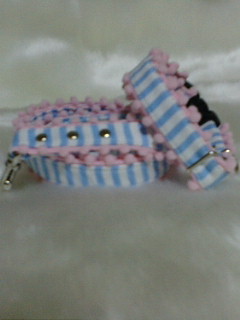 白に紺色の小さなイカリ柄でカラー&リードを作りました♪