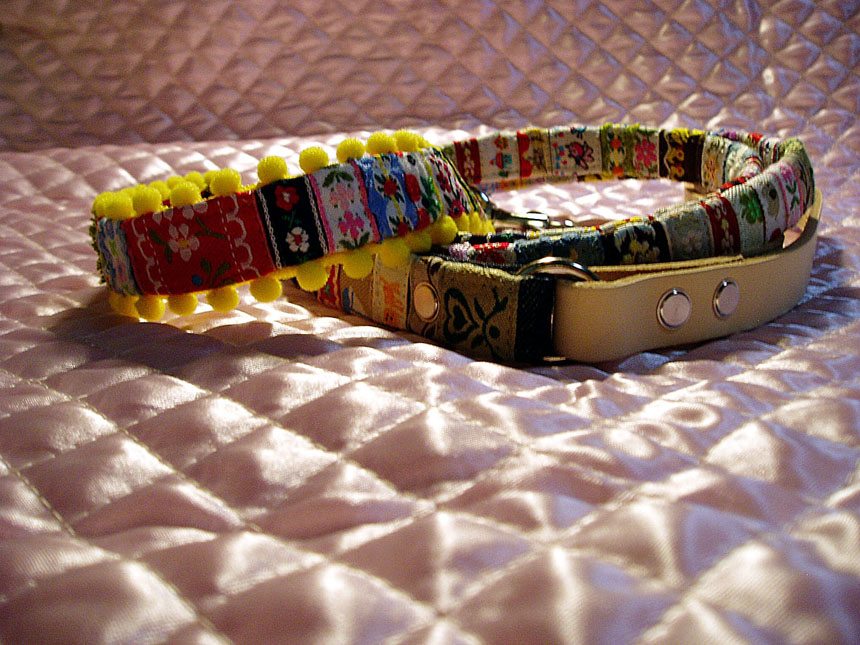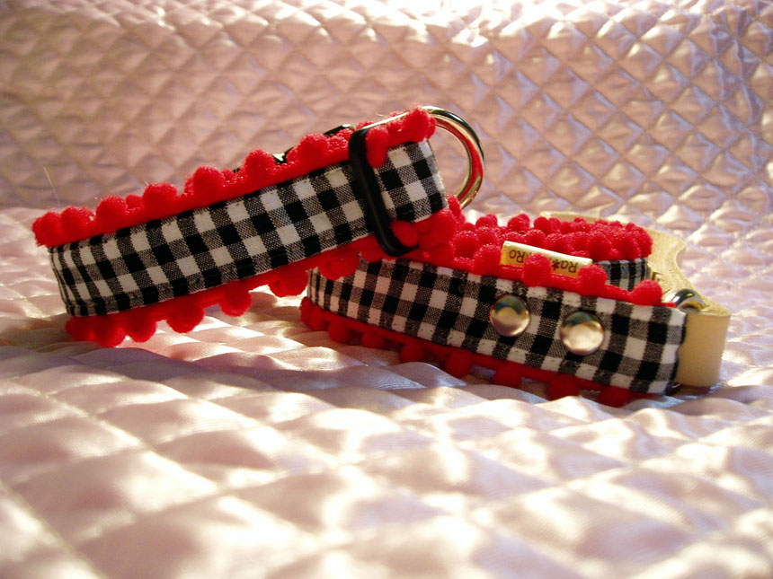 チロルテープのハーフチョークとギンガムチェック&ボンボンのカラー&リード♪